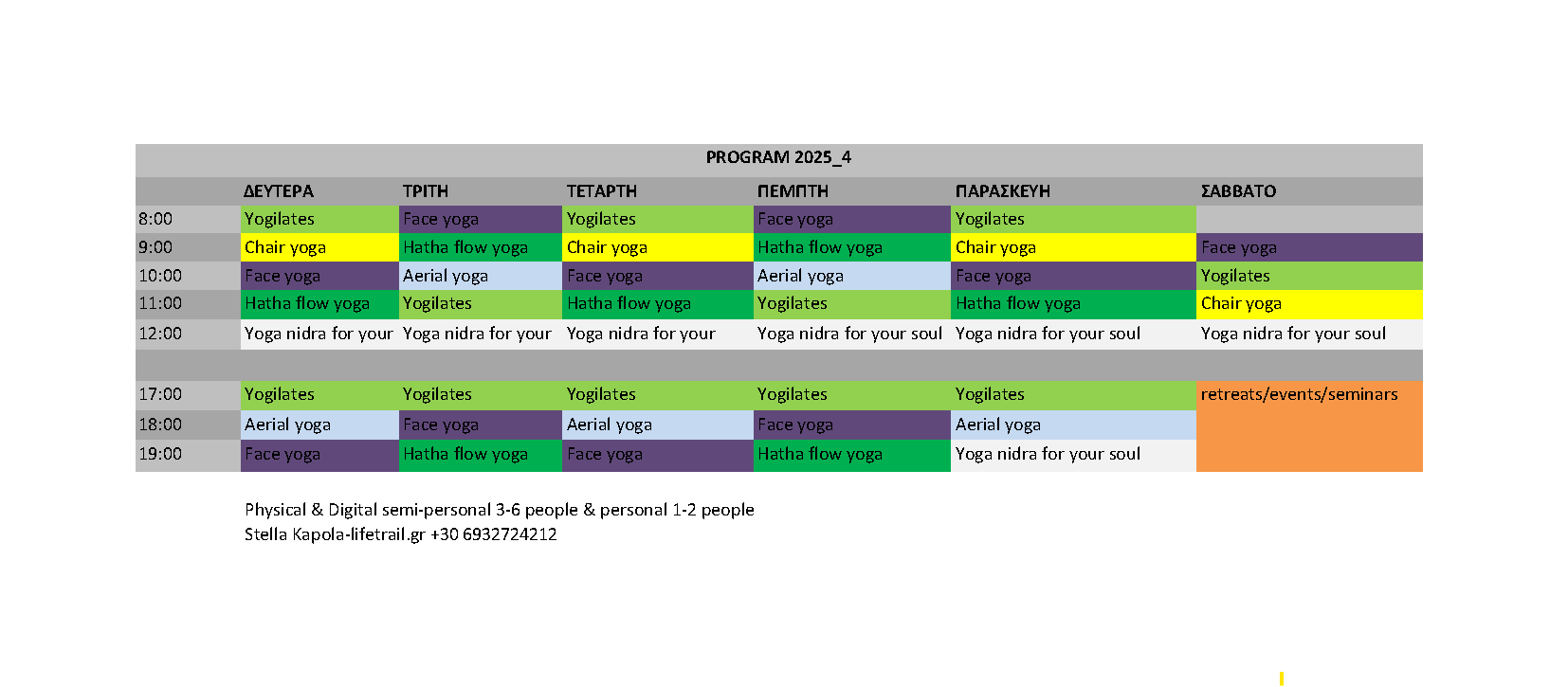 ❈ Για περισσότερες πληροφορίες, για τα μαθήματα/retreats/events/seminars και για να κλείσετε θέση, επικοινωνήστε μαζί μας.